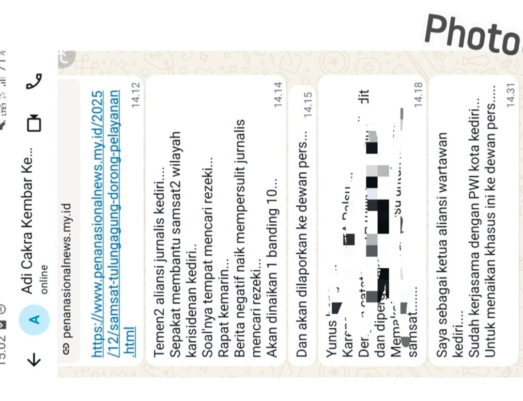Kontroversi semakin mencuat ketika Adi, yang juga dikenal dengan sebutan “Adi Bo” di kalangan tertentu, menyampaikan pernyataan melalui pesan WhatsApp pada 25 Desember 2025. Dalam pesan tersebut, ia menyebut adanya kesepakatan “aliansi jurnalis Kediri” untuk membantu Samsat di wilayah Karesidenan Kediri.